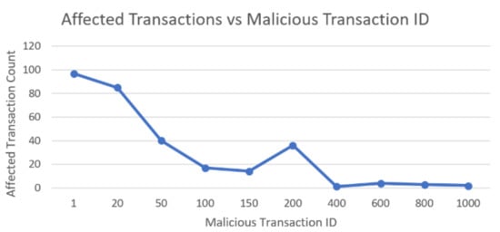 To get a better idea of the number of affected transactions for each malicious transaction ID, Figure 2 is provided.
