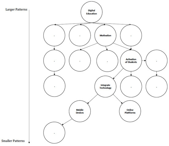 From the pattern representation, the essential aspects for practice can be quickly identified and further patterns in the network can be taken into account. Considering this, a possible pattern language could appear as it is shown in Figure 9. The network is arranged into larger and smaller patterns, where based on Alexander’s idea [4,5], the smaller patterns complete the larger patterns. Assuming the teacher is searching for a good approach to activate students, a start would be at the pattern “Activation of Students” and the following ones would complete this one. The information contained therein then determines the individual procedures for teaching.