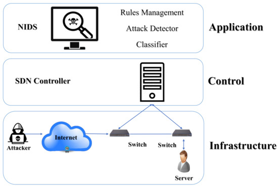 In this section, we discuss and explain each component and its role in the NIDS architecture. As shown in Figure 1, the SDN architecture can be divided into three main layers, as follows: