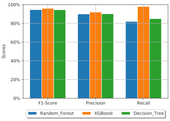 The proposed model XGBoost is compared with other tree-based machine learning algorithms, using F1-score, precision and recall as evaluation metrics.