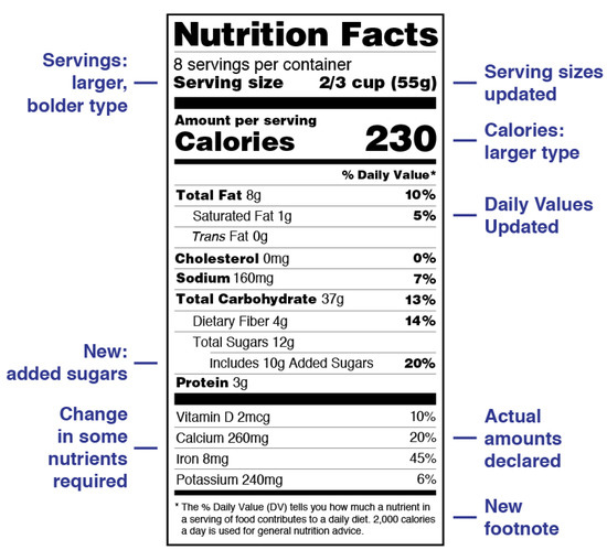 - US Food and Drug Administration Changes to the Nutrition Facts Label. Available online: https://www.fda.gov/food/food-labeling-nutrition/changes-nutrition-facts-label (accessed on 3 June 2020).