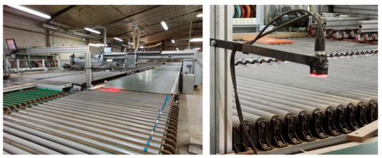Camera scanning pieces in the conveyor of the edge banding machine.