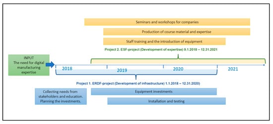 The SmartLab concept consists of two separate projects with related activities and their subgoals: the European Regional Development Fund (ERDF) project [41] and the European Social Fund (ESF) project [42]. Figure 2 presents the SmartLab concept with its main timelines and activities.