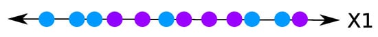 K-Nearest-Neighbors or KNN is a simple classification algorithm first proposed by Evelyn Fix and Joseph Hodges [] in 1951 and further developed by Thomas Cover [] in 1967. This algorithm stores all the input data with its corresponding labels and classifies a new observation based on similarity []. This classification is done based on the labels of its nearest neighbors. The KNN algorithm has been used on several Industry 4.0 framework applications, such as cybersecurity [], aircraft’s useful life prediction [], fault classification [], nephropathy prediction in children [], intrusion detection systems [], etc. In order to understand better how KNN works, let us take a brief example.