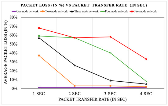 Average packet loss analysis for a static five-node network at the gateway edge level. Increasing the number of nodes significantly influences the size of packet loss when detailed data are communicated.