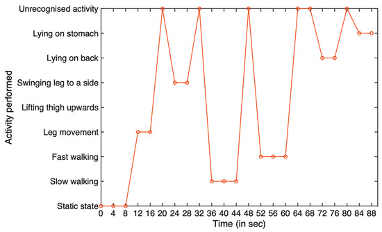 Sample representation of the real-time activity movement recognition performed by a subject during a day.