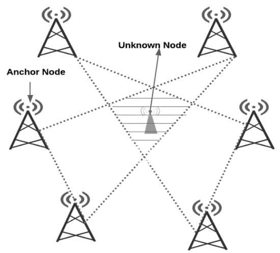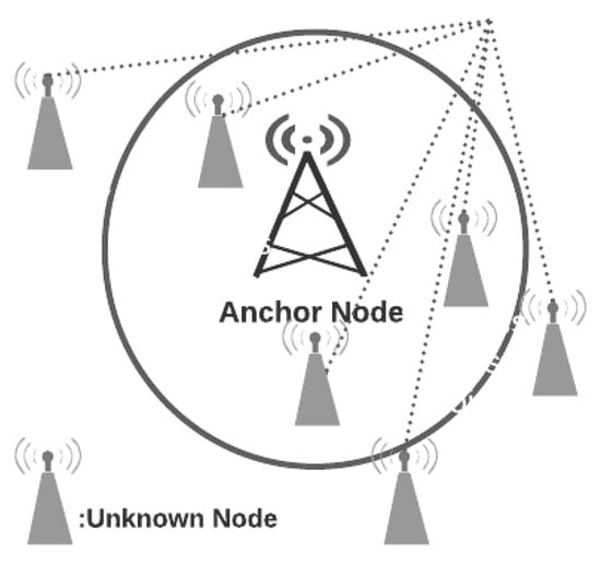 where represents a total number of sensor nodes and are an unknown node’s coordinate. Most of the approaches in this technique are dependent on the center and the anchor node coordinates for estimating an unknown node’s position [31].