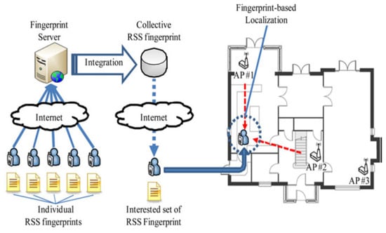 Wi-Fi fingerprint-based localization [45] uses the strongest access point for the maximum received signal strength (RSS) value. In the next phase, duplication of the access points of the fingerprints and the distance generates accurate approximation irrespective of the building structure and data dispersal of the access point. The framework of the proposed approach is as shown in Figure 10.