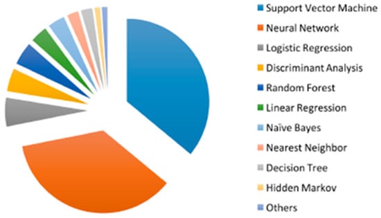 Whether in prevention, early diagnosis of illness or the right choice of therapy, artificial intelligence and machine learning in combination with IoT-enabled WSNs can make a significant contribution in the healthcare scenario. In the future, better and more personalized medical care can be provided. Machine learning is a key technology in artificial intelligence. It requires a large amount of sample data, on the basis of which special algorithms develop models using pattern recognition. In the next step, these models can be upgraded and applied to unknown situations [32]. Figure 4 shows general classification of machine learning algorithms.