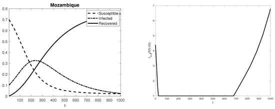 Each figure confirms that the higher the stiffness ratio, as listed in Table 2, the faster the transit of fake news will be. In some countries, such as India or Mozambique, where the internet penetration index is small, the function  grows much than in the other cases (corresponding to countries with higher internet penetration indices). As a consequence, smaller values of the stiffness ratio correspond to a slower achievement of the maximum number of infected people and, consequently, to a slower dispersion of fake news. The observed number of time units needed to achieve the maximum number of infected is listed in Table 3: one can observe that the number of time units is coherent with the stiffness ratio, so the smallest value is for France, while the largest is for Mozambique.