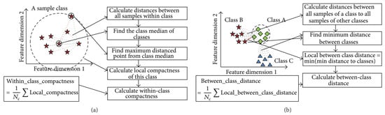 Process of objective value calculation: (a) Within-class compactness (b) between-class distance.