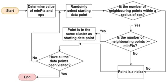 - Khan, M.M.R.; Siddique, M.A.B.; Arif, R.B.; Oishe, M.R. ADBSCAN: Adaptive Density-Based Spatial Clustering of Applications with Noise for Identifying Clusters with Varying Densities. In Proceedings of the 4th International Conference on Electrical Engineering and Information Communication Technology (iCEEiCT), Dhaka, Bangladesh, 13–15 September 2018; IEEE: Piscataway, NJ, USA; pp. 107–111. [Google Scholar]