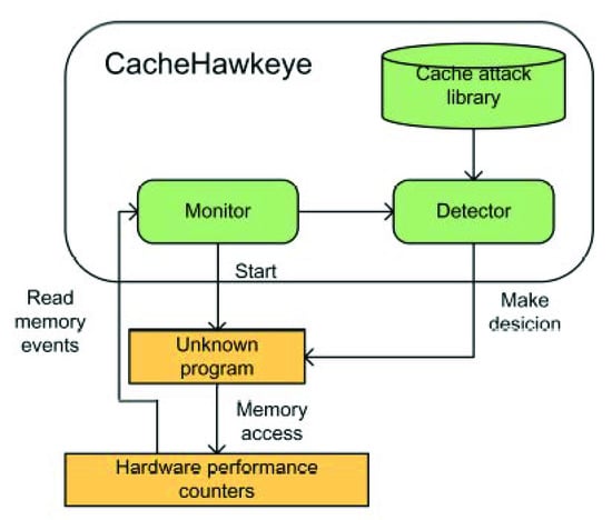 Cache side channel detection technology could be divided into two main categories: signature-based detection [11,12,13,14,15,16] and anomaly-based detection [17,18,19]. Some detection techniques [20,21,22] use a combination of signature and anomaly-based detection techniques.