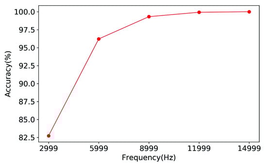 The accuracy of malicious and legit programs at different sampling frequencies is shown in Figure 4. The accuracy of the CacheHawkeye is only 82.7% when the sampling frequency is 2999. CacheHawkeye’s accuracy improves as the sampling frequency rises. The accuracy rate reaches 100% when the sampling frequency reaches 14,999.