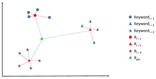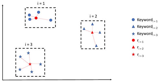 We experimented systematically with different values for min count and size before selecting the most suitable for our model. To control this process, we have used a Python implementation of t-SNE (sklearn.manifold.TSNE (http://scikit-learn.org/stable/modules/generated/sklearn.manifold.TSNE.html, accessed on 8 January 2022)) to visualize the Word2Vec model topics data in a 2D plot. The window size parameter is set as the average number of words (132) contained in all the abstracts and keywords of the considered papers. With this choice, words coming from the same paper (words of abstracts and keywords) tend to be related to each other. After the creation of the model, the vocabulary contains 13187 unique words.