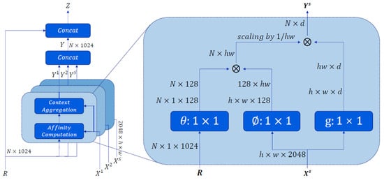 where denotes the single-scale contextual feature of RoI, is the value transform function (implemented as 1 × 1 convolution). Let denote the single-scale contextual RoI features.