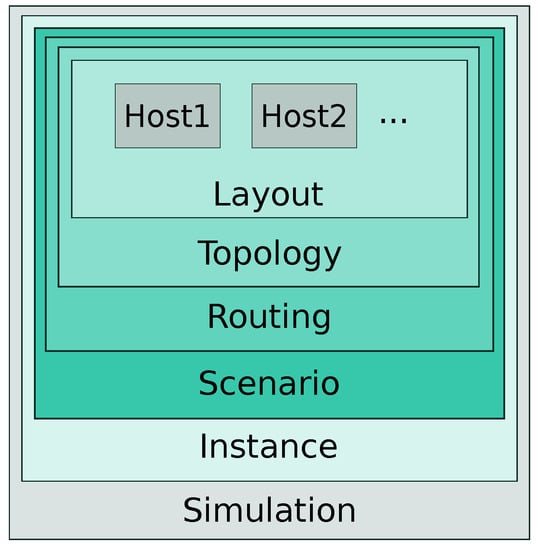 Our simulation does not model real devices. Instead, it reproduces the results of their behavior. Thus, the simulation does not include the precise timing of the communication in a network. We decided to establish a reference operation that takes for simplicity constant time. This operation is the retransmission of the message to the next hop under ideal conditions. In reality the retransmission is not an atomic operation, and it is influenced by many factors such as node performance or the amount of data traffic going through that node. We expect that all nodes are identical and the data traffic is not too dense, therefore we could neglect these factors. We define Time Unit (TU) to represent the retransmission time. All metrics, which are related to time, use TU as a unit.