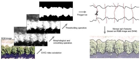 11]. The authors did not focus on the individual identification of each plant to calculate the biomass but on the identification of failures due to the decrease in the canopy density.