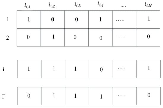As stated by the coverage model defined previously, the coverage vector of a specific node is demarcated by . A binary model is used to know the coverage of a POI by a wireless sensor. Boolean operators are applied to vectors. A composite covering vector of and can be obtained by the Boolean union between and :