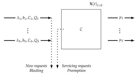 A depiction of considered Queueing System (QS) functioning is given by the scheme model in Figure 2.