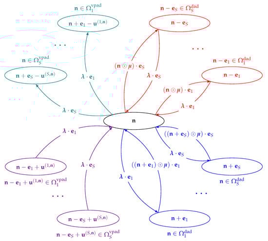 A depiction of the system transition diagram, for an arbitrary state , i.e., , is given in Figure 3.