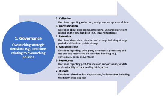 Altman et al. [5] devised a data lifecycle for managing data within a business that broke data management into 5 lifecycle stages: collection, transformation, retention, access/release and post-access. This lifecycle applied to decision making would mean that the practitioner would, for instance, at the earliest stage of the data lifecycle, collection, decide, among other things, what data they are going to collect, how they are going to collect and use the data, and whether or not they need to obtain consent from the data subject while later in the data lifecycle, decisions will need to focus on other areas such as whether or not to retain or share the data.