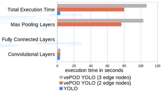 We also evaluated the execution time of vePOD CNNs for detecting objects. Figure 5 shows the performance of vePOD Faster R-CNN and Faster R-CNN in processing 800 × 800 images.