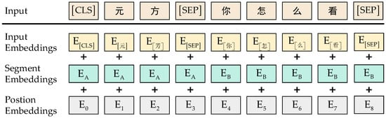 Input characterization diagram of BERT. (The intput ”元芳,你怎么看” is translated as “Yuan Fang, what do you think”).