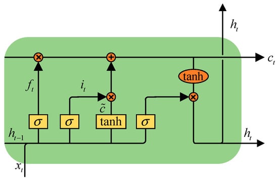 Each cell unit in LSTM adopts a new structure, which mainly consists of four parts: input gate , output gate , forget gate , and storage unit . The internal structure of a single cell of the LSTM module is shown in Figure 4.