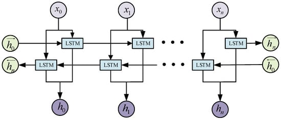 The ordinary LSTM model calculates the one-way hidden layer sequence , while BiLSTM calculates the forward hidden layer vector as  and the backward hidden layer vector as  and finally combines the two for output vector , as shown in Figure 7. The calculation formula is as follows: