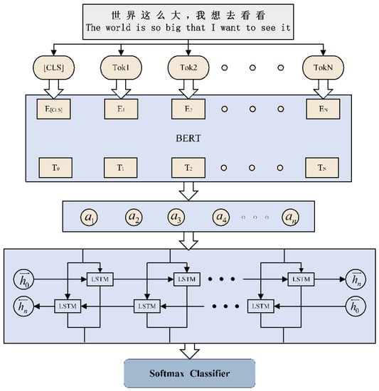 The proposed BERT–BiLSTM model multiplies the output  (including ) of the hidden layer training of BERT by the learnable weight