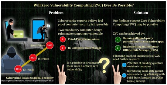 - Comprehend how ZVC achieves zero vulnerability without using adversary-facing encryption techniques. In the state of the art, encryption is the first and, in most cases, the only defense against intruding adversaries [30], rendering the cybersecurity of a legacy victim computer vulnerable to a quantum computer’s ability to break the standard encryption algorithms;