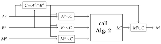 Correctness of Algorithm 1. As discussed after the proof of Proposition 12, and are refluent canonical sets, and C is an initial segment of every merger of and . Moreover, if is a merger of and , then is a merger of and . From here the correctness of the algorithm follows easily. □