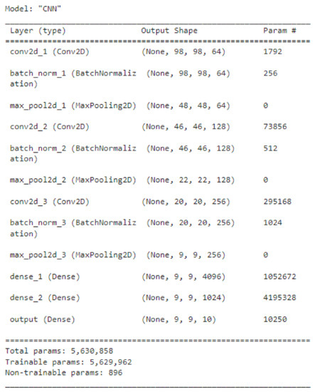 In our proposed methods, we chose the combination of Mediapipe for feature extraction and neural networks for classification instead of using CNN, which can conduct feature extraction and classification by itself. As seen in Figure 12, a simple CNN with three convolutional layers, three batch normalization layers, three max-pooling layers, and three dense layers has more than 5 million parameters, while in our proposed method, we used a simple neural network with three dense layers only, as shown in Figure 13.