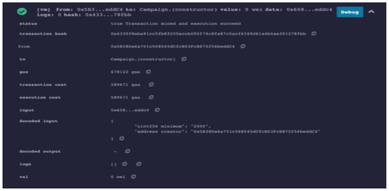Figure 3 and Figure 4 display the state of smart contracts that have been deployed and the cost of transactions on the Ethereum blockchain. The transaction cost in this instance is 589,671 gas, as can be observed. Therefore, creating a private blockchain in the SDN would be economical. With the aid of the Multi-chain blockchain development platform, a private blockchain for network security was created. By uploading our networking routes and controller information to the blockchain, followed by regular checks to see if the network routes have changed or not, the network is made more secure by performing security checks. Therefore, we only need to isolate that one malicious node from the network and avoid performing security checks on the entire network. Here, an attacker tries to provide bogus information to the controller in order to change the routing information. Routing attacks change how packets are routed on SDN by manipulating routing control information [21]. As a result, multi-controller nodes employing multichain can detect a malicious node and an intrusion attempt to change the routing information.