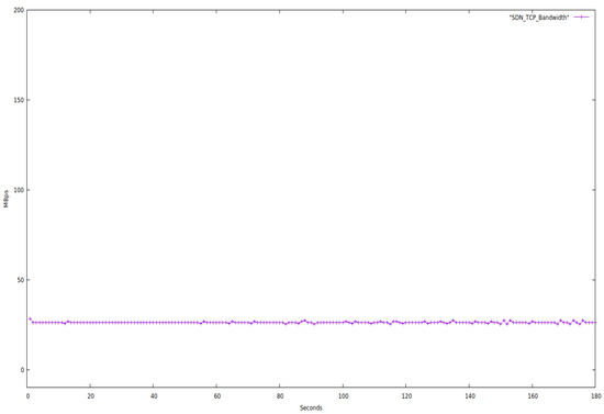 We evaluated both networks for 180 s while restricting the bandwidth to 25 Mbps and only using TCP protocol packets. Below is a graph of the network properties.