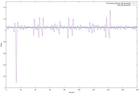 Figure 5 and Figure 6 make it very evident that SDN offers more bandwidth stability than traditional networks.
