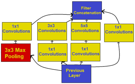 - Szegedy, C.; Liu, W.; Jia, Y.; Sermanet, P.; Reed, S.; Anguelov, D.; Erhan, D.; Vanhoucke, V.; Rabinovich, A. Going Deeper with Convolutions. In Proceedings of the IEEE Conference on Computer Vision and Pattern Recognition (CVPR), Boston, MA, USA, 7–12 June 2015; pp. 1–9. [Google Scholar]
