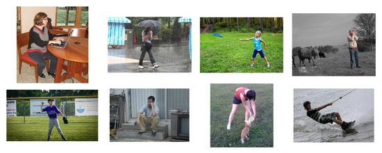- Andriluka, M.; Pishchulin, L.; Gehler, P.; Schiele, B. 2d human pose estimation: New benchmark and state of the art analysis. In Proceedings of the IEEE Conference on Computer Vision and Pattern Recognition, Columbus, OH, USA, 28 June 2014; pp. 3686–3693. [Google Scholar]