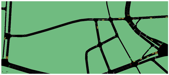The simulation system used is based on data from Gueriau and Dusparic [52], who captured historical traffic data from Irish roads to measure the efficiency and safety of various traffic networks. Autonomous vehicles are modeled using cooperative-adaptive cruise control (C-ACC) at level 2 automation on sections of a network that covers 5 km × 3.5 km of the center of Dublin, including 435 signalized intersections, national and 2-way roads, and 4-lane motorway stretches. Traffic flows were generated using an urban network from the Dublin SCATS dataset, which counts the number of vehicles every 6 min across 480 locations in the city.