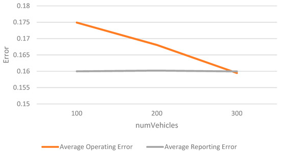 Average operating and reporting error from increasing the number of vehicles in the simulation.