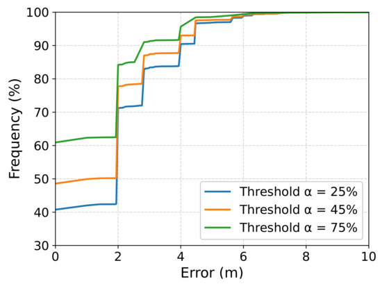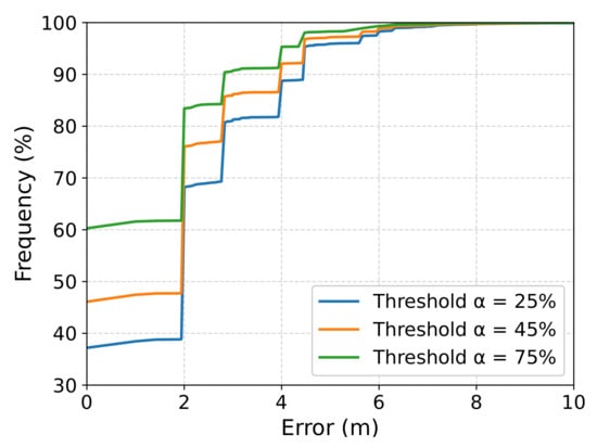 of the estimations resulted in an error lower than or equal to 2 m. On the other hand, for a threshold