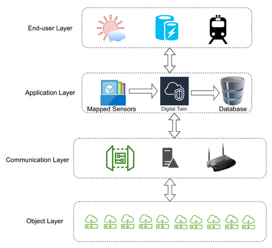 As massive numbers of IoT devices have been implemented across a variety of real-world applications and physical locations, and the collection, aggregation, storage, and analysis of their generated data is a prodigious challenge. Figure 5 illustrates a generic architecture for IoT systems [47], which consists of four layers (i.e., object layer, communication layer, application layer, and end-user layer).