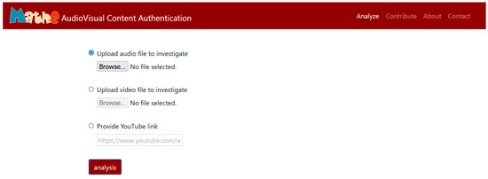 The media file is uploaded in a temporary folder for the needs of analysis, to be deleted later. However, the application provides the user with the option to submit the file to the dataset, along with the analysis results and, optionally, a personal opinion on the authenticity of the file, as described in Section 2.3. The files, the analysis results, and the user annotations are stored in the database.