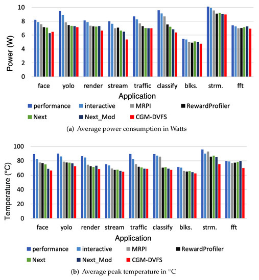 - Dey, S.; Singh, A.K.; Saha, S.; Wang, X.; McDonald-Maier, K.D. RewardProfiler: A Reward Based Design Space Profiler on DVFS Enabled MPSoCs. In Proceedings of the 2019 CSCloud/2019 EdgeCom IEEE, Paris, France, 21–23 June 2019. [Google Scholar]