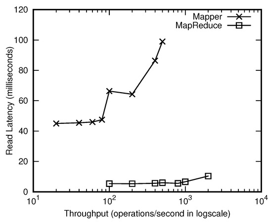 Figure 5 shows the recovery quality that are resulted from our two proposals. The mapreduce-based approach outperforms others clearly in terms of the averaged delay of a read operation. Its read latency is approximately 5 milliseconds, while other three approaches take at least 40 milliseconds on average to fetch a value given a key.