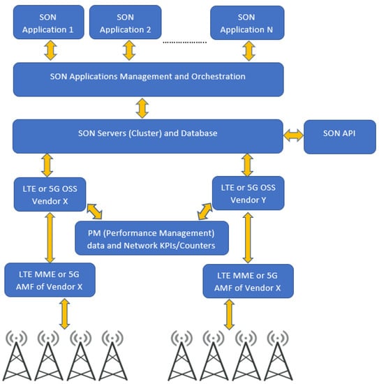 - Self-Organizing Networks (SON) for 5G Networks (3GPP TS 28.313 Version 16.0.0 Release 16). Available online: https://www.etsi.org/deliver/etsi_ts/128300_128399/128313/16.00.00_60/ts_128313v160000p.pdf (accessed on 7 February 2022).