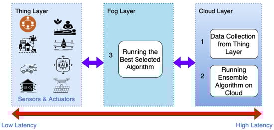For the IoT, several security solutions have been proposed, such as authentication [3], detection, and prevention [4]. Introducing machine learning (ML) algorithms into the IoT may alleviate concerns about security and privacy [5,6]. Today, it is crucial to decide where to run which algorithms for fast decision making, such as on the cloud or the fog or the thing layer. When all ML decisions are made in the cloud, IoT decisions may be delayed. In other layers, such as the thing or fog layer, it may be difficult to apply ML solutions due to their limited resources, such as bandwidth, processing, and energy.