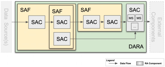 Figure 1 shows the different components used and their relationship when building Reference Architectures. The components should be thought of as nodes of a graph and are connected by directed edges denoting the flow of data. All components (SACs, SAFs, and DARAs) consist of: