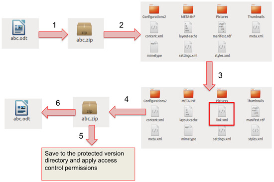 - Step 3: Adding a new XML file (link.XML) to the file archive that contains an absolute URL (i.e., a link) of the file version to be created in step 5.